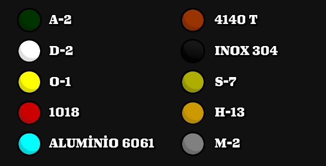 6061, Bronce 660, Laton 360, Cobre II, Cobre III |